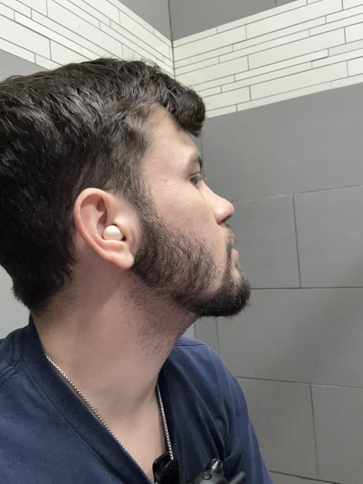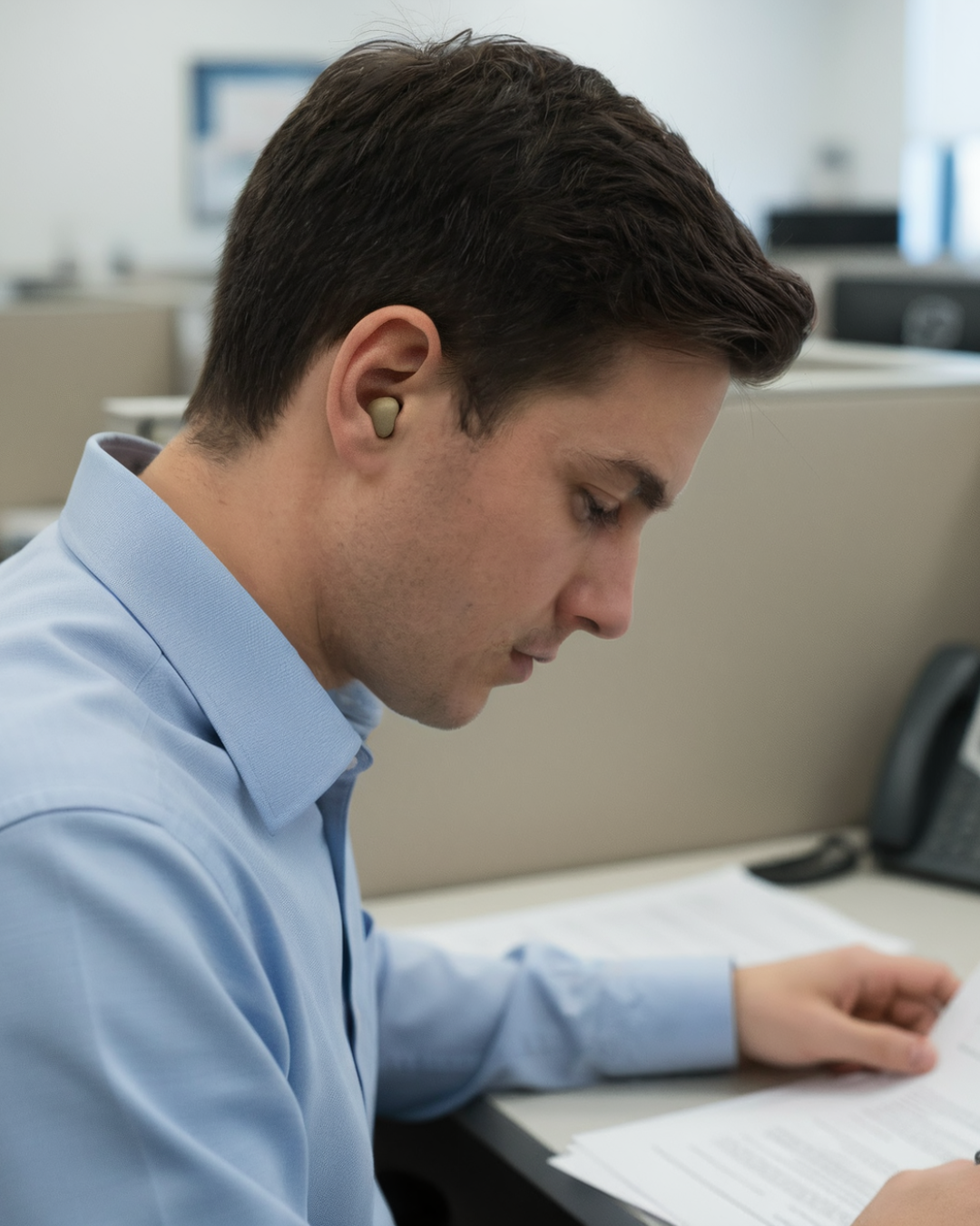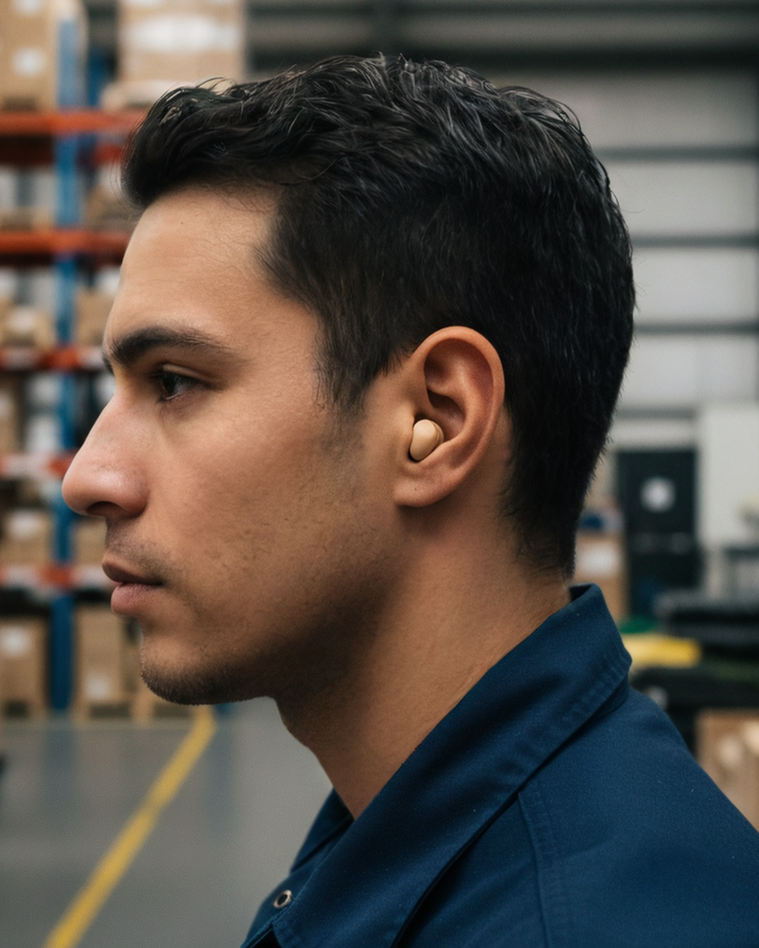 70% smaller than AirPods. Nearly invisible from 10+ feet. Wear them all shift. Nobody notices.